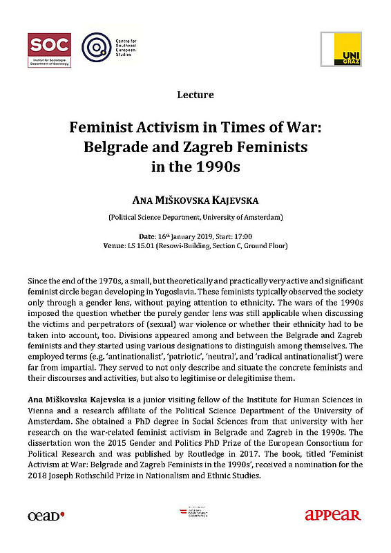 Since the end of the 1970s, a small, but theoretically and practically very active and significant feminist circle began developing in Yugoslavia. These feminists typically observed the society only through a gender lens, without paying attention to ethnicity. The wars of the 1990s imposed the question whether the purely gender lens was still applicable when discussing the victims and perpetrators of (sexual) war violence or whether their ethnicity had to be taken into account, too. Divisions appeared among and between the Belgrade and Zagreb feminists and they started using various designations to distinguish among themselves. The employed terms (e.g. ‘antinationalist’, ‘patriotic’, ‘neutral’, and ‘radical antinationalist’) were far from impartial. They served to not only describe and situate the concrete feminists and their discourses and activities, but also to legitimise or delegitimise them.